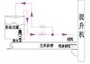 通過在生料上噴淋高效脫硫劑,再經風混,在預熱器高溫下,與含硫礦物及煙氣中的SO?進行催化氧化反應。